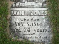 CemSearch: Name: David Jones; Born: 1791; Died: Nov 8 1868; Age: 74; ID: WOODS264; No other names; Cemetery: Woods Cemetery, Conc 1 Lot 12, Cramahe Twp., Sec S Row 1 Plot 6 (https://www.cemsearch.ca/burial/?pid=WOODS264%5E0.)2,3