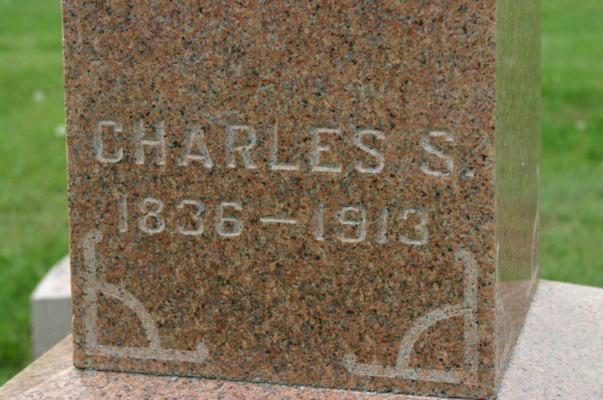 Note: Was this a purchase from the estate? I see no family conncetion between these folks.4 He appeared on the census of April 1861 at Brighton, Northumberland Co., Canada West; Age 25 at 1861 Census: see Alfred J. Wright.1 He lived on 20 October 1863 at BF Conc 1, Brighton Twp., Northumberland Co., Canada West; Land Registry Records (B&S A180) show that Charles S. Wright sold property from BF, Conc 1 (Lot 11) to William Quick. ITS Date: Oct 20 1863. Reg'n. Date: Oct 31 1863. (Ontario Land Registry Records, GSU197810, Abstract Index Books, Brighton Twp., June 17 2013; also seen under Brighton Village, Book 03, pg. 080 of 203, South Side of Harbour St., (originally BF, Lot 1), copied from OnLand by Dan, Nov 30 2020.)4 He married Jane C. "Jernnie" Blizard, daughter of John Blizard and Elizabeth Van Horn, on 10 November 1863 at Brighton Twp., Northumberland Co., Canada West; Marriage Register: Groom: Charles Wright; Age: 24; Res.: Brighton Twp; Parents: James Wright & - ; Bride: Jane Blizard; Res.: Brighton Twp; Born: Wellington; Parents: John & Elizabeth Blizard; Date: Nov 10 1863; Place: Northumberland Co; MF: 1030061 (Ontario Marriage Registers, ancestry.ca) per CemSearch.2,5 Charles S. Wright died in 1913; Date 1913 per CemSearch.2 He was buried in 1913 at Mount Hope Cemetery, Brighton, Northumberland Co., Ontario; Memorial: (See Exhibit) Charles S; 1836; 1913; (Mount Hope Cemetery, Susan Brose collection, #1158 - other side of stone from Alfred)