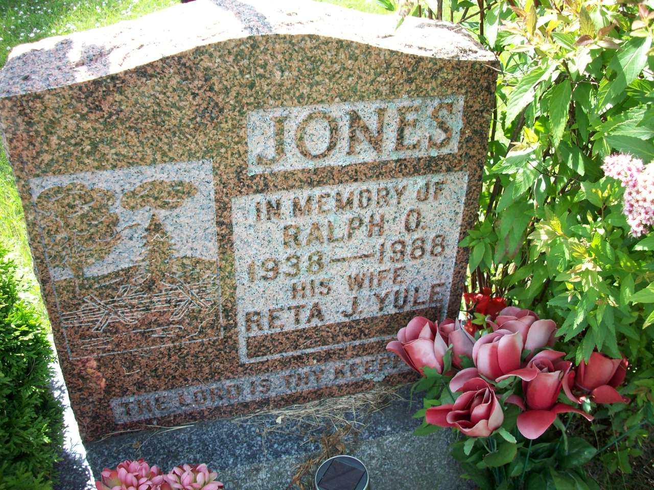 Ralph Orley Jones was born on 21 July 1938 at Cramahe Twp., Castleton, Northumberland Co., Ontario; Date Jul 21 1938 & location Castleton per family tree of DonnaCowie39 on ancestry.ca, Sep 25 2020.1 He married Reta Jean Yule on 26 July 1958 at Ontario; per family tree of DonnaCowie39 on ancestry.ca, Sep 25 2020.1 Ralph Orley Jones died on 2 April 1988 at Toronto, York Co., Ontario, at age 49; Date Apr 2 1988 per Memorial. per family tree of DonnaCowie39 on ancestry.ca, Sep 25 2020.1,2 He was buried on 5 April 1988 at Castleton Cemetery, Castleton, Northumberland Co., Ontario; Memorial: (See Exhibit) JONES; In Memory of; Ralph O; 1938 - 1988; His Wife; Reta J. Yule; -- (Castleton Cemetery, Castleton, Jul 13 2009.)2