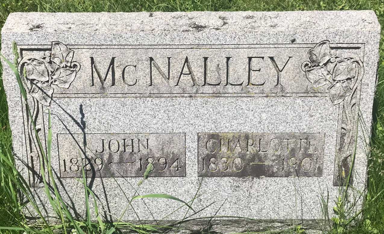 FindaGrave: Name: Charlotte McNalley; BIRTH: 23 Jan 1830; DEATH: 12 Jan 1901 (aged 70); BURIAL: Mount Hope Cemetery