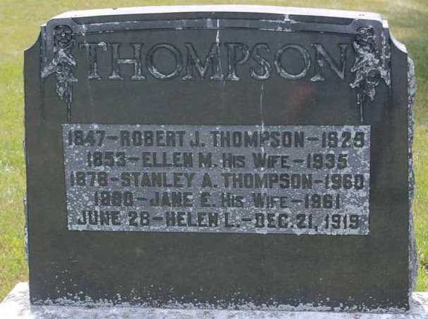 Helen L. Thompson was born on 28 June 1919 at Ontario; Date Jun 28 1919 per Memorial.1 She died on 21 December 1919 at Ontario; Date Dec 21 1919 per Memorial.1 She was buried on 23 December 1919 at Hilton Cemetery, Hilton, Northumberland Co., Ontario; Memorial: (see Exhibit) THOMPSON; 1847 - Robert J. Tjompson - 1929; 1853 - Ellen M. His Wife - 1935; 1878 - Stanley A. Thompson - 1960; 1888 - Jane E. His Wife - 1961; June 28 - Helen L. - Dec 21, 1919 (Hilton Cemetery, Brighton Twp., image from CemSearch, Nov 17 2021.)1