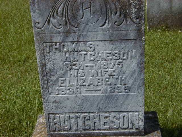 Thomas Hutcheson was born in 1831; Date 1831 per Memorial. per marriage reg'n. of son Scott Hutcheson & Minnie Alida Tweedle.1,2 He married Elizabeth McMasters, daughter of John McMasters and Sarah Powers, on 8 January 1858 at Brighton Twp., Northumberland Co., Canada West; per marriage reg'n. of son Scott Hutcheson & Minnie Alida Tweedle. Date Jan 8 1858 & location Brighton Twp. per family tree of Pamela Church on ancestry.ca, Feb 8 2022.1,3 Thomas Hutcheson was buried in 1875 at Mount Carmel Cemetery, Murray Twp., Northumberland Co., Ontario; Memorial: (see Exhibit) Thomas; Hutcheson; 1831-1875; His Wife; Elizabeth; 1836-1899; HUTCHESON (Mount Carmel Cemetery, Murray Twp., July 10 2004 by Dan.)2 He died in 1875 at Northumberland Co., Ontario; Date 1875 per Memorial.2