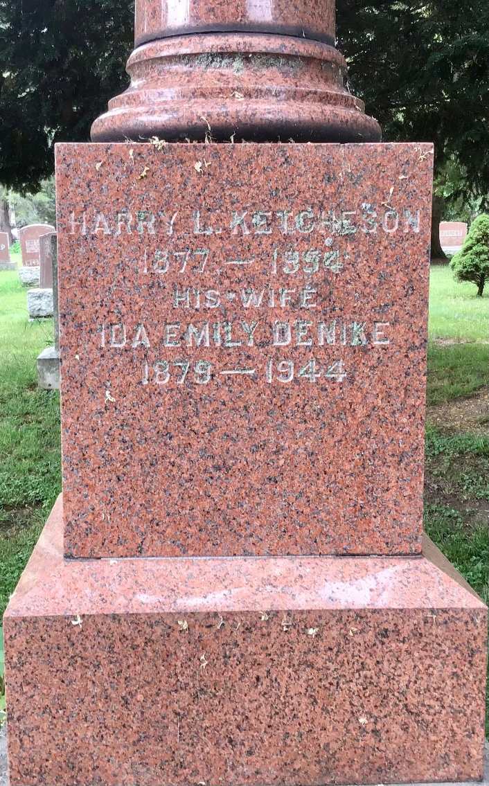 FindaGrave: Name: Harry Lewis Ketcheson; BIRTH: 1877; DEATH: 6 Dec 1954 (aged 76–77); BURIAL: Belleville Cemetery, Belleville, Hastings County, Ontario, Canada; MEMORIAL ID: 228892154 (https://www.findagrave.com/memorial/228892154/harry-l-ketcheson?_gl=1*1oexj1d*_ga*MTM2OTMxODYxNS4xNjM1ODgwODE4*_ga_4QT8FMEX30*MTY2MDQ3OTgxMS4xODkuMS4xNjYwNDc5ODI3LjA.)5,6