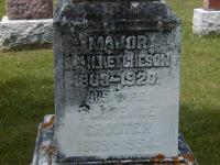 William Henry Ketcheson was born on 17 July 1863 at Sidney Twp., Hastings Co., Canada West; Date 1863 per Memorial & FindaGrave. Date 1862 & location Ont. per 1891 Census. Date 1863 & location Ont. per 1871 Census. Date 1862 & location Sidney Twp. per marriage reg'n. - Florence Crouter. Date Jul 17 1862 & location Sidney Twp. per family tree of Bill Smith on ancestry.ca, Aug 14 2022.1,2,4,7,5,6 He appeared on the census of April 1871 at Sidney Twp., Hastings West Co., Ontario; Age 8 at 1871 Census: see William Henry Ketcheson.2 He lived on 5 January 1887 at Sidney Twp., Hastings Co., Ontario; Residence Sidney Twp. per marriage reg'n. - Florence Crouter.5 He married Florence Crouter, daughter of Lewis Crouter and Maria ?, on 5 January 1887 at Sidney Twp., Hastings Co., Ontario; Marriage Reg'n.#004752: Groom: W. H. Ketcheson; Age: 24; Res. & Born: Sidney Twp; Status: bachelor; Occ.: farmer; Parents: Wm. H. & Hester Ketcheson; Bride: Forence Crouter; Age: 18; Res.: Sidney Twp; Born: Prince Edward Co; Status: spinster; Parents: Lewis & Maria Crouter; Wit.: J.F. Chapman & M.K. Young, Sidney Twp; Date: Jan 5 1887; Place: Sidney Twp; Rel.: Meth; Performed by: Rev. W.H. Cook; Reg'r.: F.B. Prior, Sidney Twp. (Ontario Marriage Registration, #004752-1887, ancestry.ca) per family tree of Bill Smith on ancestry.ca, Aug 14 2022.1,8 William Henry Ketcheson appeared on the census of 8 April 1891 at Belleville, Hastings West Co., Ontario; Age 29 at 1891 Census: Ketcheson, W.H., 29, b. Ont., p.b. Ont., Meth., bar tender, married; Florence, 21, b. Ont., p.b. Ont., Meth., married (1891 Census: Belleville, Hastings West Co., dist. 75, sub-dist. A-7, pg. 11, line 25 - ancestry.ca.)6 He died on 31 January 1920 at Haldimand Twp., Grafton, Northumberland Co., Ontario, at age 56; Death Reg'n.#027151: Name: William Henry Ketcheson; Date: Jan 31 1920; Age: 56y; Res.: Grafton, Haldimand Twp; Born: Sidney Twp., 1864; Status: married; Occ.: commission merchant; Parents: William Henry Ketcheson & - ; Inf.: R.H. Ketcheson, Belleville; Burial: Belleville Cemetery; Und.: Lickell & Sons, Belleville; Cause: suffocation; Phys.: Dr. Ferris, Coroner, Cobourg; Reg'd.: Jan 31 1920; Reg'r.: James Blacklock, Grafton (Ontario Death Registration, #027151-1920, ancestry.ca) Date Jan 31 1920 & location Haldimand Twp. per family tree of Bill Smith on ancestry.ca, Aug 14 2022.1,9 He was buried on 2 February 1920 at Belleville Cemetery, Belleville, Hastings Co., Ontario; Memorial: (see Exhibit) MAJOR; Wm. H. Ketcheson; 1863 - 1920; His Wife; Florence; Crouter; 1869 - 1954 (Belleville Cemetery, Belleville, image from FindaGrave, Aug 14 2022)