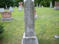 William Edward Meredith was born on 21 May 1830 at Murray Twp., Northumberland Co., Upper Canada; Date May 1830 per Memorial - age 37y 10m at death Mar 21 1868. Date May 21 1830 per CemSearch. Date 1826 & location UC per 1861 Census. Date 1825 & location Cda. per 1851 Census.1,3,6,4 He appeared on the census of 1852 at Murray Twp., Northumberland Co., Canada West; Age 26 at 1851 Census: Meredith, William E., 26, b. Cda., CE, yeoman, single; Evans, Ann, 16, b. Cda., CE, single; George, 10, b. Cda., CE (1851 Census: Murray Twp., Northumberland Co., pg. 75 of 172, ancestry.ca.)4 He married Ann Evans, daughter of Thomas Evans and Nancy Griffiths, after 1852 at Murray Twp., Northumberland Co., Canada West; Not married per 1851 Census but shown together with George Evans, under Joseph and Susannah Thomson. per CemSearch.1,4 William Edward Meredith appeared on the census of April 1861 at Murray Twp., Northumberland Co., Canada West; Age 35 at 1861 Census: Meredith, William E., 35, b. UC, CE, farmer, married; Ann, 24, b. England, CE, married; Albert Edward, 8,b. UC; Mary Anne, 3; George Allen, 1 (1861 Census: Murray Twp., Northumberland Co., pg. 898 of 899, line 25 - ancestry.ca.)3 He died on 21 March 1868 at Murray Twp., Northumberland Co., Ontario, at age 37; Date Mar 21 1868 per Memorial & CemSearch.1,6 He was buried on 23 March 1868 at Carrying Place Cemetery, Murray Twp., Carrying Place, Northumberland Co., Ontario; Memorial: (see Exhibit) William E. Meredith; Died Mar. 21, 1868; Aged 37 Y'rs. 10 Mo; His Wife; Ann; Also Wife of; George R. Mabee; Died Apr. 2, 1908; Aged 74 Years (Carrying Place Cemetery, Murray Twp., image by Dan Buchanan, Jul 11 2004)