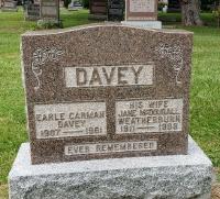 (CemSearch: Name: Earle Carman Davey; Born: 1907; Died: 1961; Age: 54y; ID: MTHOPE982; Other names: Weatherburn, Jane McDougall ( - ); Cemetery: Mount Hope Cemetery, Conc A Lot 35, Brighton Twp., Village of Brighton, Northumberland Co., Sec 3 Row 18 (https://www.cemsearch.ca/burial/?pid=MTHOPE982%5E0.)4,6,7