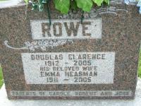 Emma Heasman was born on 18 June 1911 at Stirling, Hastings Co., Ontario; Date 1911 per Memorial.1,2 As of 27 March 1937,her married name was Rowe.1 She married Douglas Clarence Rowe, son of William Clarence Rowe and Amelia "Millie" Shore, on 27 March 1937 at Peterborough, Peterborough Co., Ontario; per family tree of wstableford on ancestry.ca, Feb 29 2024.1 Emma Heasman died on 30 October 2005 at Warkworth, Northumberland Co., Ontario, at age 94; Date 2005 per Memorial. Date Oct 30 2005 & location Warkworth per family tree of wstableford on ancestry.ca, Feb 29 2024.1,2 She was buried on 3 November 2005 at Warkworth Cemetery, Warkworth, Northumberland Co., Ontario; Memorial: (see Exhibit) ROWE; Douglas Clarence; Rowe; 1912 - 2005); His Beloved Wife; Emma Heasman; 1911 - 2005; Parents of Carole, Robert and John (Warkworth Cemetery, Warkworth, image by Dan Buchanan, Jun 28 2025.)2