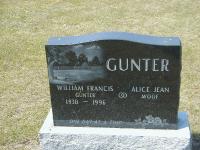 or the Quinte Alliance Church would be appreciated by the family. FRANKFORD FUNERAL CHAPEL (613) 398-6400. (www.quintefuneralcentres.com)." http://www.rushnellfamilyservices.com/book-of-memories/393828/gunter-jean/obituary.php.2 She was buried on 22 February 2010 at Stockdale Cemetery, Stockdale, Northumberland Co., Ontario; Memorial: (See Exhibit) GUNTER; William Francis; Gunter; 1930 - 1996; Alice Jean; Woof (Stockdale Cemetery, Stockdale, June 25, 2006.)1