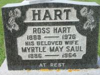 Date Aug 17 1887 per 1901 Census. Date Aug 17 1888 per GEDCOM of Edward Ufford, Sep 16, 2002.1 He appeared on the census of April 1891 at Belmont Twp., Peterborough Co., Ontario; Age 3 at 1891 Census: see Freeman Hart.2 He appeared on the census of 13 April 1901 at Belmont Twp., Peterborough Co., Ontario; Age 14 at 1901 Census: see Freeman Hart.3 He lived on 4 April 1911 at Havelock, Peterborough Co., Ontario; Residence Havelock per marr. reg'n.4 He married Myrtle Marion Saul, daughter of Robert Saul and Sarah Douglas, on 4 April 1911 at Trenton, Hastings Co., Ontario; Marriage Reg'n.#005616: Groom: Ross Hart; Age: 21; Res.: Havelock; Status: bachelor; Occ.: farmer; Rel.: Meth; Parents: Freeman Hart & Rebecca Masters; Bride: Myrtle Marion Saul; Age: 22; Res.: Camden East; Status: spinster; Occ.: school teacher; Rel.: Meth; Parents: Robert ? Saul & Sarah Douglas; Wit.: Mrs. ?G. A. Hoag, Trenton & Mrs. E. J. ??, Trenton; Date: Apr 4 1911; Place: Trenton; Sworn: trenton, Apr 4 1911; Reg'r.: T. f. Rixon, Trenton (Ontario Marriage Registration, #005616-1911, ancestry.ca)