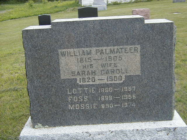 /William Palmateer / 1815 – 1905 / wife / Sarah CARROLL / 1820-1900 / Lottie 1886-1957 Foff – 1888 – 1955 Mossie 1890-1974