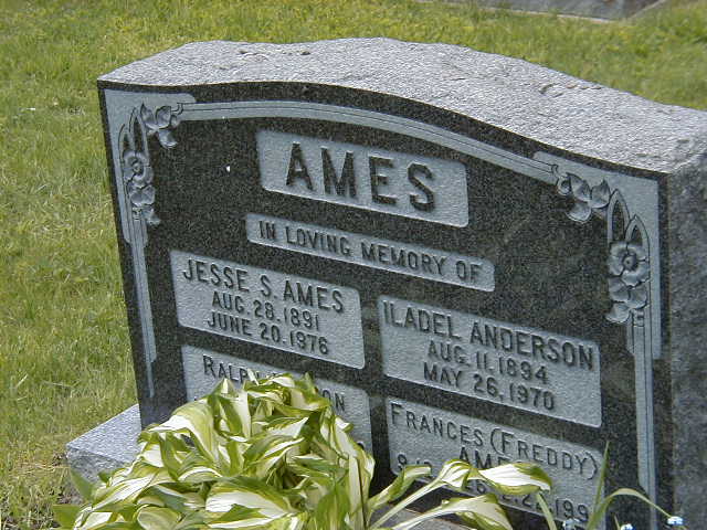 He was buried on 23 June 1976 at Bowmanville Cemetery, Bowmanville, Durham Co., Ontario; On Stone: Ames; Jesse S. Ames; Aug 28 1891; June 20 1976 - Iladel Anderson; Aug 11 1894; May 26 1970 - Frances (Freddy); Ames; 9.12.1925-2.22.1991 - Ralph Wilson; Ames; 11.25.1918-2.01.1998 (seen May 27, 2001)