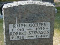 Ralph Thomas Goheen was born on 13 October 1910 at Ontario; Date Oct 13 1910 per Alan E. Richards GEDCOM. Date 1910 per Burial.1,2 He was buried in 1939 at Union Cemetery, Cobourg, Northumberland Co., Ontario; Memorial: (See Exhibit) Ralph Goheen; 1910 - 1939; Robert Stevason; 1928 - 1944 (Cobourg Union Cemetery, June 5, 2005)