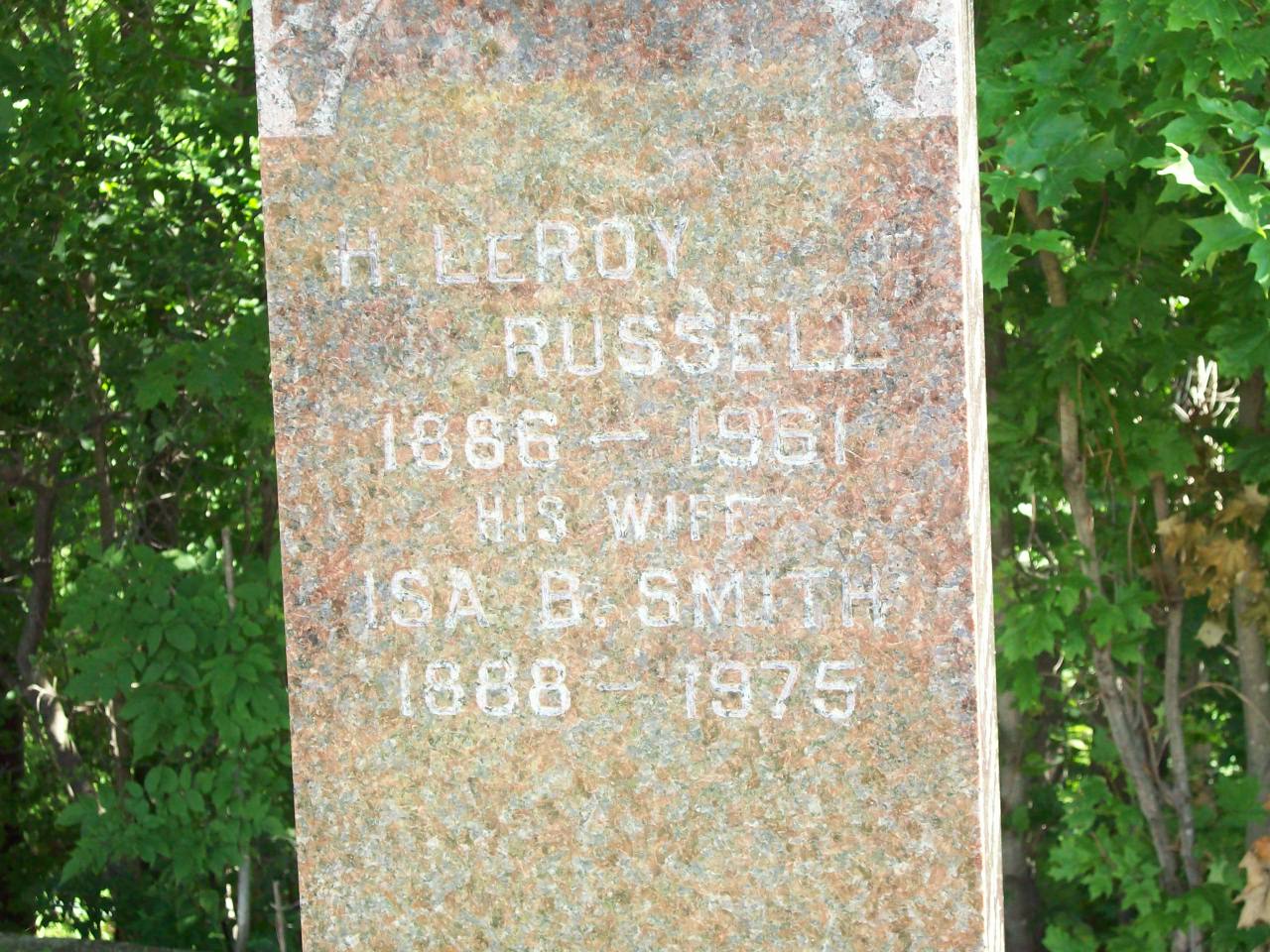 Maude Iva Russell was born on 31 October 1896 at Brighton Twp., Northumberland Co., Ontario; Birth Reg'n.#025847: Name: Iva Maud Russell; Parents: William Henry Russell, farmer & Ada Luella Ames; Inf. & Phys.: N. B. H. Dean, MD, Brighton; Reg'd.: Nov 25 1896; Reg'r.: D. Crouter (Ontario Birth Registration, #025847-1896, ancestry.com) Date 1897 & location Ont. per 1921 Census. Date 1896 per Memorial. Date Oct 1893 & location Ont. per 1911 Census. Date Oct 31 1896 & location Ont. rural per 1901 Census. Date 1896 & location Brighton Twp. per marr. reg'n.3,4,1,2,5,6 She appeared on the census of April 1901 at Brighton Twp., Northumberland Co., Ontario; Age 4 at 1901 Census: see Henry Russell.7 She appeared on the census of 1911 at Addison St., Brighton, Northumberland Co., Ontario; Age 14 at 1911 Census: see William Henry Russell.4 She lived on 15 June 1915 at Brighton, Northumberland Co., Ontario; Residence Brighton per marr. reg'n.2 As of 26 January 1916,her married name was Hennessy. She married John Lyon Hennessy, son of Daniel R. Hennessy and Ruth Watt Lyon, on 26 January 1916 at Brighton, Northumberland Co., Ontario; Marriage Reg'n.#015847: Groom: John Lyon Hennessy; Age: 20; Res. & Born: Brighton Twp; Status: bachelor; Occ.: farmer; Rel.: Meth; Parents: David N.? Hennessy & Ruth Lyon; Bride: Maude Iva Russell; Age: 19; Res.: Brighton; Born: Brighton Twp; Status: spinster; Rel.: Meth; Parents: Wm. Henry Russell & Ada Ames; Wit.: Ruth B. S..?? & Lloyd Herrington, Brighton; Date: Jan 26 1916; Place: Brighton; Performed by: Wesley Elliott, Brighton, Meth; Sworn: Brighton, Jan 19 1916; Reg'r.: G. A. S. Thorne, Brighton (Ontario Marriage Registration, #015847-1916, ancestry.com.)8 Maude Iva Russell appeared on the census of 11 June 1921 at Brighton Twp., Northumberland Co., Ontario; Age 24 at 1921 Census: see John Hennessy.6 She lived on 21 February 1930 at Brighton, Northumberland Co., Ontario; Per Death Notice of father William Henry Russell. She was buried in 1976 at McPail's Cemetery, Brighton Twp., Northumberland Co., Ontario; Memorial: (See Exhibit) HENNESSY; John Lyon Hennessy - 1896 - 1972; His Wife; Maude Iva Russell - 1896 - 1976; Their Infant Son; Gerald Russell - 1919 (McPhail's Cemetery, Brighton Twp., Jun 4 2005.)5 She died in 1976 at Ontario; Date 1976 per Memorial.5