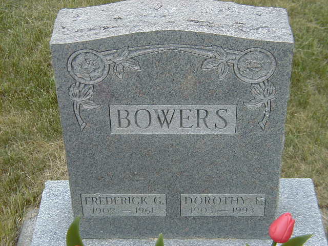 Frederick Charles Bowers was born in 1902; Per Carolyn O'Neil's Doc/Tree, July 22, 2001. He married Dorothy Florence Bowen, daughter of Walter Bowen and Christina McChesney, before 1923 at Ontario. Frederick Charles Bowers was buried in 1961 at Pioneer Cemetery, New Liskeard, Timiskaming District, Ontario; Memorial: (See Exhibit) BOWERS; Frederick G; 1902 - 1961; Dorothy F; 1903 - 1993 (Pioneer Cemetery, New Liskeard, July 1, 2005.)1 He died in 1961 at Ontario; Date 1961 per Burial. Per Carolyn O'Neil's Doc/Tree, July 22, 2001.1