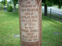 Note: Charles Hough is below, Samuel Stinson next, Christopher German next.3 He died on 10 January 1899 at Ontario at age 75; Date Jan 10 1899 per Memorial.2 He was buried on 12 January 1899 at Castleton Cemetery, Castleton, Northumberland Co., Ontario; Memorial: (See Exhibit) In; Memory of; John Stinson; Died; Jan. 10, 1899; Aged 75 Yrs; At Rest; His Wife; Phoebe Bedell; Died; Mar 1 1923; Aged 93 Yrs. (Castleton Cemetery, Castleton, Jul 15 2009.)2