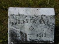 CemSearch: Name: Charles E. Becker; Born: 1896; Died: 1918; ID: MTHOPE243; Other names: Becker, Charles S. ( -1887), Becker, Sarah [Irish]( -1885); Cemetery: Mount Hope Cemetery, Brighton, Sec 1 Row 12 (https://www.cemsearch.ca/burial/?pID=MTHOPE243%5E2) per Death Reg'n.1,2,9