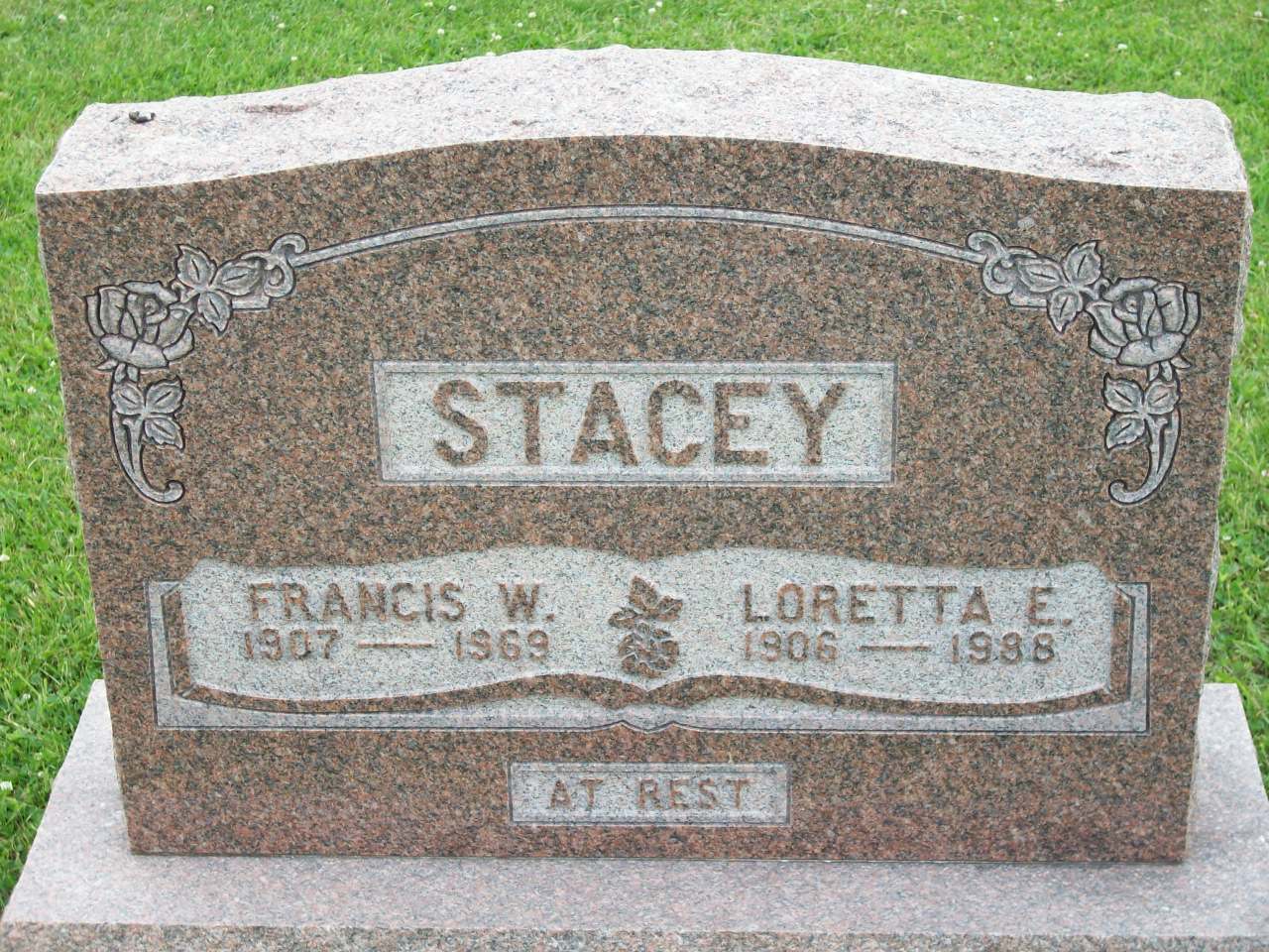 Date 1907 per Memorial. per The McColl Clan: Scotland to Canada, by Leona M. Austin.3,4 He married Edith Loretta McColl, daughter of Llewellyn Carleton "Lew" McColl and Alice May Richards, on 1 June 1927 at Northumberland Co., Ontario; per family tree of C Chiasson on ancestry.ca, Jun 12 2017.2 Francis William Stacey was buried in 1969 at McPhail's Cemetery, Brighton Twp., Northumberland Co., Ontario; Memorial: (See Exhibit) STACEY; Francis W; 1907 - 1969 - Loretta E; 1906 - 1988 (McPhail's Cemetery, Brighton Twp., June 30, 2008.)3 He died in 1969 at Ontario; Date 1969 per Memorial.3