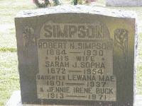 Date 1930 per Burial.1,10 He was buried on 15 October 1930 at Trent Valley Cemetery, Hastings, Northumberland Co., Ontario; Memorial: (See Exhibit) SIMPSON; Robert N. Simpson; 1864 - 1930; Sarah J. Sopha; 1872 - 1954; Daughter Lewana Mae; 1901 - 1937; & Jennie Irene Buck; 1913 - 1971 (Trent Valley Cemetery, Hastings, June 3, 2005) per Death Reg'n.1,2