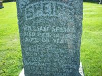 William Speirs was born on 15 September 1849 at Otonabee Twp., Peterborough Co., Ontario; Date Sep 15 1849 & location Ont. rural per 1901 Census. Date 1850 & location Ont. per 1891 Census. Date 1849 & location Ont. per 1881 Census. Date 1849 & location UC per 1861 Census. Date 1848 & location Cda. per 1851 Census. Date Sep 10 - & location Otonabee Twp. per Death Reg'n. Date 1849 per Memorial.1,2,3,4,5,6,7 He appeared on the census of 1851 at Otonabee Twp., Peterborough Co., Ontario; Age 3 at 1851 Census: see Alexander Speirs.8 He appeared on the census of April 1861 at Otonabee Twp., Peterborough Co., Ontario; Age 12 at 1861 Census: see Alexander Speirs.9 He married Jannett Redpath, daughter of William Redpath and Catharine Nelson, on 30 October 1872 at Otonabee Twp., Peterborough Co., Ontario; Death Reg'n.#011704: Groom: William Speirs; Age: 23; Res. & Born: Otonabee; Status: bachelor; Occ.: farmer; Parents: Alexander & Janet; Bride: Janet Redpath; Age: 23; Res. & Born: Otonabee; Status: spinster; Parents: William & Catharine; Wit.: Alexander Speirs & Alison Redpath, Otonabee; Date: Oct 30 1872; Place: Otonabee; Rel.: W.M; Performed by: W. R. Barker; Reg'r.: Geo. Read (Ontario Marriage Registration, #011704-1872, ancestry.com.)10 William Speirs appeared on the census of April 1881 at Otonabee Twp., Peterborough Co., Ontario; Age 31 at 1901 Census: Speirs, William, 31, b. Ont., CM, Scot., lab., married; Jennet, 31, b. Ont., married; Kattey, 7; Jennet A., 5; May E., 3; Alberta A., 1.11 He appeared on the census of April 1891 at Otonabee Twp., Peterborough Co., Ontario; Age 41 at 1891 Census: Speirs, William, 41, b. Ont., p.b. Scotland, Meth., lab., married; Jennet, 41, b. Ont., p.b. Scotland, Meth., married; Catherine, 17, b. Ont., p.b. Ont; Jannet, 15; Mary, 13; Albert, 11; Andrew, 9; Nelson, 7; Margaret, 3; Agnes, 6/12 (1891 Census: Otonabee Twp., dist. 109, sub-dist. p-1, pg. 20, line 8 - ancestry.com.)7 He appeared on the census of April 1901 at Otonabee Twp., Peterborough Co., Ontario; Age 51 at 1901 Census: Speirs, William, 51, b. Ont. Sept 15 1849, Scot., Meth., lab., married; Jennet, 50, b. Ont. Dec 17 1850, married; Mary T., 23, b. Jul 23 1877; Albert A., 21, b. Oct 3 1885; Margaret, 13, b. Mar 10 1888; Nelson V., 15, b. May 21 1885; Cora, 10, b. Oct 1 1890; Harold, 4, b. May 14 1896; Lillian, 4, b. Dec 25 1896 - grand-daughter (Conc 6, Sp 18.)12 He lived in April 1901 at Conc 6 SP 18, Otonabee Twp., Peterborough Co., Ontario; Residence per 1901 Census: Conc 6, SP 18, Otonabee Twp. He died on 8 February 1930 at Otonabee Twp., Lang Village, Peterborough Co., Ontario, at age 80; Death Reg'n.#029430: Name: William Speirs; Date: Feb 8 1930; Age: 80y 5m; Res.: Lang Village, Otonabee Twp; Born: Sep 10 - , Otonabee Twp; Status: widower; Occ.: lab; Res. at place of death: 33 yrs; Parents: Alexander Speirs & Gennet Currie?, both b. Scotland; Inf.: Albert Speirs, son, Lang; Burial: Fife Cemetery, Feb 8 1930; Und.: Mr. Mather, RR 8, Peterboro; Reg'd.: Feb 10 1930; Reg'r.: John J. Moore (Ontario Death Registration, #029430-1920, ancestry.com.)13 He was buried on 10 February 1930 at Fife's Cemetery, Otonabee Twp., Peterborough Co., Ontario; Memorial: (See Exhibit) Speirs; William Speirs; Died: Feb 8, 1930; Aged 80 Years; His Wife; Jane Redpath; Died Jan 12, 1926; Aged 73 Years; Margaret S. Speirs; Died Feb 23 1956; Aged 68 Years (Fife's Cemetery, Otonabee Twp., Sep 2008) Date Feb 10 1930 per Death Reg'n.3,6