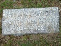 Barbara Campbell was born on 7 December 1847 at Cramahe Twp., Northumberland Co., Canada West; Date 1848 per Memorial. Date 1847 & location Cramahe Twp. per Death Reg'n. Date Dec 7 1849 & location Ont. rural per 1901 Census. Date Dec 1849 & location Ont. per 1911 Census. Date 1852 & location Ont. per 1881 Census. Location Cramahe Twp. per Death Reg'n. of son Francis Herman "Frank" Carr. Location Northumberland per GEDCOM of Sharon Garland, April 25, 2005.1,2,3,4,5,6 She appeared on the census of April 1861 at Cramahe Twp., Northumberland Co., Ontario; Age 13 at 1861 Census: see Isaac Campbell.7 As of 1 December 1865,her married name was Carr.1 She married Ira Carr, son of James Carr and Nancy Tilletson, on 1 December 1865 at Cramahe Twp., Northumberland Co., Canada West; Date Dec 1 1865 per CEMSearch Record.1 Barbara Campbell appeared on the census of April 1871 at Cramahe Twp., Northumberland Co., Ontario; Age 20 at 1871 Census: see Ira Carr.8 She appeared on the census of April 1881 at Cramahe Twp., Northumberland Co., Ontario; Age 29 at 1881 Census: see Ira Carr.2 She appeared on the census of April 1901 at Cramahe Twp., Northumberland Co., Ontario; Age 52 at 1901 Census: see Ira Carr.4 She appeared on the census of June 1911 at Brighton Twp., Northumberland Co., Ontario; Age 62 at 1911 Census: see Ira Carr.5 She died on 8 October 1927 at Main St., Brighton, Northumberland Co., Ontario, at age 79; Death Reg'n.#024557: Name: Barbara Carr; Date: Oct 8 1927; Age: 80y 11m 11d; Res.: Main St., Brighton; Born: Cramahe Twp., 1847; Status: widow; Occ.: housewife; Parents: Isaac Cambell & Betsey Hardnen, b. Cda; Phys.: R. J. Wade, Brighton; Inf.: Mrs. Frank Carr, Brighton, daughter-in-law; Burial: Woods Cemetery, Oct 10 1927; Und.: B. E. Brintnell, Brighton; Reg'd.: Oct 8 1927 (Ontario Death Registration, #024557-1927, ancestry.com) Date 1927 per Memorial & CEMSearch. Location Cramahe per GEDCOM of Sharon Garland, April 25, 2005.1,3,9,10 She was buried on 10 October 1927 at Woods Cemetery, Cramahe Twp., Northumberland Co., Ontario; Memorial: (See Exhibit) Barbara Campbell; Wife of Ira Carr; 1848 - 1927 (Woods Cemetery, Cramahe Twp., Jul 6 2009)
