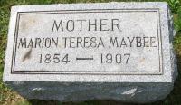 FindaGrave: Name: Marion Teresa Simmons Maybee; Birth: 1854; Death: Aug 1907 (aged 52–53), Rochester, Monroe County, New York, USA; Burial: Mount Hope Cemetery, Rochester, Monroe County, New York, USA; Plot: Single Grave BB, row 111, grave 36; Memorial ID: 156716609 (https://www.findagrave.com/memorial/156716609/marion-teresa-maybee.)4,3