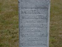 Vestia Herrington was born on 11 October 1825 at Ameliasburgh Twp., Prince Edward Co., Upper Canada; Date 1825 & location Prince Edward Co. per Death Reg'n. Date 1825 & location Ont. per 1891 Census. Date 1826 & location Ont. per 1881 Census: Date 1823 & location Ont. per 1871 Census. Date 1826 & location UC per 1861 Census. Date 1824 & location Cda. per 1851 Census. Date 1824 per Marriage Register. Date Oct 11 1825 per GEDCOM of Barbara Lenker, Mar 15, 2004.1,5,6,7,3,2,8,4 She lived on 2 January 1845 at Murray Twp., Northumberland Co., Canada West; Residence per Marriage Register.5 As of 2 January 1845,her married name was Montgomery.1 She married Henry Montgomery, son of Hugh Montgomery and Rebecca Van Wicklen, on 2 January 1845 at Brighton Twp., Northumberland Co., Canada West; Marriages by Joshua Webster, 1845: Henry Montgomery, 24 of Murray and Vasty Herrington, 21 of Murray (pg. 165, The Tobey Book, Brighton Public Library, June 1, 2004)
