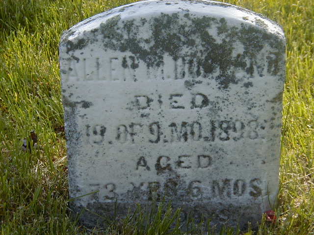 Allen M. Dorland was born on 1 March 1825 at Hillier Twp., Prince Edward Co., Upper Canada; Date Mar 1 1825 (age 73y 6m 21d at death Sep 19 1898) & location Hillier per Death Reg'n. Date Feb 26 1825 per GEDCOM of Richard Lander, Oct. 29, 2006. Date 1825 & location Ont. per 1881 Census. Date 1825 & location ont. per 1871 Census. Date 1825 & location Cda. per 1861 Census. Date 1824 & location Cda. per 1851 Census. per GEDCOM of George Gildersleeve, June 17, 2004.1,2,3,4,5,6 He married Patty G. Cronk circa 1850 at Prince Edward Co., Canada West; per 1861 Census. per IGI Record.1,7,2 Allen M. Dorland appeared on the census of 1852 at Hillier Twp., Prince Edward Co., Canada West; Age 27 at 1851 Census: Dorland, Allen M., 27, b. Cda., Friends, farmer, married; Patty, 25, b. Cda., Friends, married; Arnoldi, 1.4 He lived in April 1861 at Conc 2 Lot 14, Hillier Twp., Prince Edward Co., Canada West; Residence per 1861 Census: Conc 2, Lot 14, Hillier Twp., 113 acres.2 He appeared on the census of April 1861 at Hillier Twp., Prince Edward Co., Canada West; Age 36 at 1861 Census: Dorland, Allen M., 36, b. Cda., Quaker, farmer, married; Patty G., 34, b. Cda., Quaker, married; Arnoldi, 10; Pheba E., 7; Philip N., 2; Hutchinson, Hannah, 13.2 He lived in April 1871 at Conc 2, Lot 13 & 14, Hillier Twp., Prince Edward Co., Ontario; Residence per 1871 Census: Conc 2, Lot 13 & 14, Hillier Twp., 237 acres, owner.3 He appeared on the census of April 1871 at Hillier Twp., Prince Edward Co., Ontario; Age 46 at 1871 Census: Dorland, Allen M., 46, b. Ont., Ger., Quaker, farmer, married; Patty, 43, b. Ont., Ger., Quaker, married; Arnoldi C., 20; Phebe E., 17; Philip N., 12; Parks, Alexander, 23, farm lab., single; Steed, Sarah, 24, b. Ont., Eng. (1871 Census: Hillier Twp., div. 2, pg. 9, line - Conc 2, Lot 13 & 14, 237 acres, owner.)3 He appeared on the census of April 1881 at Hillier Twp., Prince Edward Co., Ontario; Age 56 at 1881 Census: Dorland, Allan M., 56, b. Ont., Ger., Quaker, farmer, widowed; Arnold C., 29, b. Ont., Ger., Quaker, farmer, married; Elizabeth G., 19, b. England, Eng., CE, married; Allan G., 2, b. USA, Eng., CE; Philip N., 21, b. Ont., Ger., Quaker, single (familysearch.org.)5 He died on 19 September 1898 at Hillier Twp., Wellington, Prince Edward Co., Ontario, at age 73; Death Reg'n.#018327: Name: Allen M. Dorland; Date: Sep 19 1898; Age: 73y 6m 21d; Res.: 1 Main St; Status: married; Born: Hillier Twp; Cause: paralysis, 6 yrs; Phys.: J. B. Ruttan; Rel.: Friends; Inf.: A. C. Dorland; Reg'd.: Sep 22 1898; Reg'r.: T. S. Stinson (Ontario Death Registration, #018327-1898, ancestry.com.)8 He was buried on 21 September 1898 at Wellington Cemetery, Wellington, Prince Edward Co., Ontario; Memorial: (See Exhibit) Allen M. Dorland; Died; 19. of 9.Mo.1898; Aged; 73 Yrs & 6 Mos; & 20? Days (Welliington Cemetery, Wellington, May 28 2006.)9