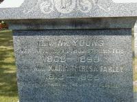 Note: Samuel is the youngest son (child?) of William Young. Emma, William and Annabella are - relatives??2 He appeared on the census of April 1881 at Trenton, Hastings Co., Ontario; Age 72 at 1881 Census: Young, William, 72, b. Ont., Irish, CM, Minister, married; Maria T., 67, b. Ont., Eng., Cm, married; Assletine, Elizabeth, 50, b. Ont., Dutch, CM, single; Carr, Sarah M., 28, b. Ont., Eng., CM, School Mistress (familysearch.org.)7 He died on 2 July 1890 at Trenton, Hastings Co., Ontario, at age 81; Date 1890 per Memorial. Date Jul 2 1890 per GEDCOM of Bill French, June 23, 2004.1,4 He was buried on 4 July 1890 at Mount Evergreen Cemetery, Trenton, Hastings Co., Ontario; Memorial: (See Exhibit) Rev. Wm. Young; 1808 - 1890; His Wife; Maria Theresa Farley; 1813 - 1895 (Mount Evergreen Cemetery, Trenton, Aug 28 2005.)4