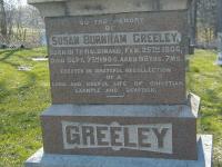 Susan Burnham Greeley was born on 17 February 1806 at Haldimand Twp., Northumberland Co., Upper Canada; per GEDCOM of Elizabeth Archer, June 24, 2004.1 She died on 7 September 1904 at Haldimand Twp., Northumberland Co., Ontario, at age 98; DAte Sep 7 1904 & location Haldimand Twp. & "never married" per GEDCOM of Glen E. Carter, Aug 30 2012. Date Sep 7 1904 per GEDCOM of Elizabeth Archer, June 24, 2004.1 She was buried on 9 September 1904 at St. Andrew's Anglican Church Cemetery, Grafton, Northumberland Co., Ontario; Memorial: (See Exhibit) To the Memory; of; Susan Burnham Greeley; Born in Haldimand Twp., Feb. 25th 1806; Died Sept. 7th 1904, Aged 98 Yrs. 7 Ms; Erected in Grateful Recollection; of a; Long and Useful Life of Christian; Example and Devotion; GREELEY (St. Andrew's Anglican Church Cemetery, Grafton.)2