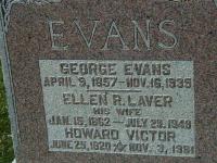 Howard Victor Evans was born on 25 January 1920 at Percy Twp., Northumberland Co., Ontario; Date June 25 1920 per Memorial. Date Jan 25 1920 from page 70 of "Ours To Remember" by Mary Ann Down, given to me by Shirley (Goodfellow) Bird Sep. 3, 2004.1,2 He died on 3 November 1981 at age 61; Date Nov 3 1981 per Memorial.2 He was buried on 6 November 1981 at Stone's Cemetery, Percy Twp., Northumberland Co., Ontario; Memorial: (See Exhibit) EVANS; George Evans; April 9, 1857 - Nov. 16, 1935; Ellen R. Laver; His Wife; Jan 15, 1862 - July 29, 1949; Howard Vistor; June 25, 1920 - Nov 3, 1981 (Stone's Cemetery, Percy Twp., June 25 2007.)2
