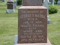 CemSearch: Name: George S. Marsh; Born: - ; Died: Jan 13 1889; Age: 77y 15d; ID: MTHOPE390; Other names: Coons, Charles ( - ), Coons, Elizabeth [Marsh] ( -1876), Marsh, Martha A. ( -1864), Marsh, Mary Ann ( -1864), Marsh, William C. ( -1861); Cemetery: Mount Hope Cemetery, Conc A Lot 35, Brighton Twp., Brighton Village, Northumberland Co., Sec 1 row 20; Note: Husband of Mary Ann. Father of Martha and William. (https://www.cemsearch.ca/burial/?pID=MTHOPE390%5E0.)3,5