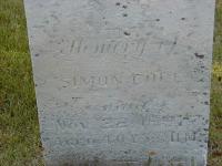 per GEDCOM of Steve Oler, Dec. 18, 2004.1,3,12,9 He was buried on 5 December 1887 at Stockdale Cemetery, Murray Twp., Northumberland Co., Ontario; Memorial: (See Exhibit) In; Memory of; Simon Cole; Died; Nov. 22, 1887; Aged 40 Yrs 11 Mo. (Stockdale Cemetery, Murray Twp., May 21 2005)
