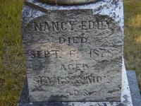 Nancy Purdy was born on 1 June 1797 at Westchester Co., New York, U.S.A; Date June 1 1797 per Memorial - age 81y 3m 5d at death Sep 6 1878. Date 1797 & location USA per 1851 Census. Date Jun 1 1797 & loaction Westchester Co., NY per family tree of Joshua Reuben Gray on ancestry.ca, Dec 2 2018. Date Jun 1 1797 & location NY per GEDCOM of Dan Harnden, Dec. 30, 2004.1,2,3,4 She married Harden Eddy, son of William Eddy and Elizabeth Smith, on 9 April 1815 at Haldimand Twp., Eddystone, Northumberland Co., Upper Canada; per family tree of Joshua Reuben Gray on ancestry.ca, Dec 2 2018. per GEDCOM of Dan Harnden, Dec. 30, 2004.2 As of 9 April 1815,her married name was Eddy.1 Nancy Purdy appeared on the census of 1851 at Haldimand Twp., Northumberland Co., Canada West; Age 54 at 1851 Census: see Harden Eddy.3 She died on 6 September 1878 at Haldimand Twp., Eddystone, Northumberland Co., Ontario, at age 81; per family tree of Joshua Reuben Gray on ancestry.ca, Dec 2 2018.1,2 She was buried on 8 September 1878 at Eddystone Cemetery, Haldimand Twp., Eddystone, Northumberland Co., Ontario; Memorial: (see Exhibit) Nancy Eddy; Died; Sept. 6, 1878; Aged; 81 Y'rs, 3 Mo's; 5 D's (Eddystone Cemetery, Eddystone, June 9 2007, by Dan.)4