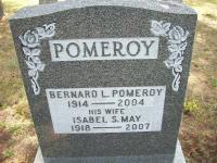 Isabel S. May was born in 1918 at Ontario; per GEDCOM of Alton Rogers, Mar 2, 2005.1 As of after 1940,her married name was Pomeroy.1 She married Bernard L. Pomeroy, son of Harry Pomeroy and Susan Pearl "Susie" Eddy, after 1940; per GEDCOM of Alton Rogers, Mar 2, 2005.1 Isabel S. May was buried in 2007 at Castleton Cemetery, Castleton, Northumberland Co., Ontario; Memorial: (See Exhibit) POMEROY; Bernard L. Pomeroy; 1914 - 2004; His Wife; Isabel S. May; 1918 - 2007 (Castleton Cemetery, Castleton, July 13 2009.)2 She died in 2007; Date 2007 per Memorial.2