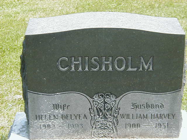Date Dec 19 1900 per 1901 Census. Date 1900 per Memorial. & CEMSearch.1,2,5,4 He appeared on the census of April 1901 at Tyendinaga Twp., Hastings Co., Ontario; Age 4 months at 1901 Census: see Joseph Chisholm.1 He appeared on the census of 1911 at Tyendinaga Twp., Hastings Co., Ontario; Age 10 at 1911 Census: see Joseph Chisholm.3 He married Helen Delyea, daughter of Willard Delyea and Lucy Anderson, on 12 April 1922 at Thurlow Twp., Roslin, Hastings Co., Ontario; Marriage Reg'n.#011796-1922: Groom: William Harvey Chisholm; Age: 21; Res. & Born: Roslin; Status: bachelor; Occ.: Miller; Rel.: Meth; Parents: Joseph Chisholm & Minnie Whitehouse; Bride: Helen Delyea; Age: 20; Res. & Born: Roslin; Status: spinster; Occ.: houswork; Parents: Willard Delyea & Lucy Anderson; Plan to live at Roslin; Wit.: Joseph M. Chisholm, Roslin & Emma Sills, R. R. #1, Halloway; Performed by: W. R. Merrick, Thomasburg, Meth; Father of Groom born: Conc 8, Tyendinaga; Father of Bride born: Madoc; Sworn at Belleville, Apr 6 1922 (Ontario Archives, MS932, Reel 613)