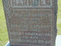 Caroline Cameron was born on 20 June 1839 at Haldimand Twp., Northumberland Co., Upper Canada; Date 1839 per Memorial & CemSearch. Date 1839 & location Ont. per 1881 Census. Date 1839 & location Ont. per 1871 Census. Date 1838 & location UC per 1861 Census. Date Jun 20 1839 & location Haldimand Twp. per family tree of sbunn126 on ancestry.ca, Jun 23 2023. Date 1839 per GEDCOM of Jack Hicks, apr 2, 2004.1,4,2,5,6,3,7 As of 15 April 1856,her married name was Harnden.1 She married William Harnden, son of William Harnden and Mary ?, on 15 April 1856 at Haldimand Twp., Northumberland Co., Canada West; Date Apr 15 1856 & location Haldimand Twp. per family tree of sbunn126 on ancestry.ca, Jun 23 2023. per GEDCOM of Jack Hicks, apr 2, 2004.1,5 Caroline Cameron appeared on the census of April 1861 at Haldimand Twp., Northumberland Co., Canada West; Age 23 at 1861 Census: see William Harnden.2 She appeared on the census of April 1871 at Haldimand Twp., Northumberland West Co., Ontario; Age 32 at 1871 Census: see William Harnden.4 She appeared on the census of April 1881 at Haldimand Twp., Northumberland West Co., Ontario; Age 42 at 1881 Census: see William Harnden.6 She lived on 21 April 1884 at Haldimand Twp., Northumberland Co., Ontario; Witness at marriage of William N. Harden & Sarah L. Smith.8 She died on 19 May 1897 at Haldimand Twp., Northumberland Co., Ontario, at age 57; Date 1897 per Memorial & CemSearch. Date May 19 1897 & location Haldimand Twp. per family tree of sbunn126 on ancestry.ca, Jun 23 2023. per GEDCOM of Jack Hicks, apr 2, 2004.1,5,3,7 She was buried on 21 May 1897 at Eddystone Cemetery, Haldimand Twp., Eddystone, Northumberland Co., Ontario; Memorial: (see Exhibit) HARNDEN; William Harnden; 1814 - 1890; His Wife; Caroline Cameron; 1839-1897; Andrew V. Harnden 1877 1948; His Wife; Elziabgeth Millar 1876 1943 (Eddystone Cemetery, Haldimand Twp., image by Dan Buchanan, Jun 9 2007)