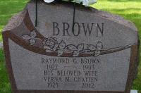 "Chatten, Verna Marie; Married November 21, 1942 to Raymond Gerald Brown; November 26, 1942" per Index of The Brighton Ensign, Nov 26, 1942, Trenton Public Library, June 5, 2005.1,2 Raymond Gerald Brown lived in 1964 at Brighton Twp., Spring Valley, Northumberland Co., Ontario; "When the surrounding schools formed an area board, S.S. #13 continued on its own until property was purchased from Raymond Brown on County Road 26 and a six-room school was erected." from page 103 of Florence Chatten's book, Brighton Township, 2009.
