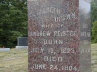 Note: Elizabeth Brown, wife of Andrew Peister, is placed as daughter of William and Ann Brown per 1851 Census which places them close to Smithfield and the Peisters with similar dates. Other records suggest this might be the case. Does anyone know for sure - or something different?1,5,6,7,8 She appeared on the census of 1852 at Brighton Twp., Northumberland Co., Ontario; Age 27 at 1851 Census: see William Brown.7 As of before 1853,her married name was Peister.1 She married Andrew Peister, son of Peter Peister Sr. and Elizabeth Coulter, before 1853 at Northumberland Co., Canada West; per 1851 Census.1,7 Elizabeth Brown appeared on the census of April 1861 at Brighton Twp., Northumberland Co., Ontario; Age 37 at 1861 Census: see Andrew Peister.9 She appeared on the census of April 1871 at Brighton Twp., Northumberland Co., Ontario; Age 47 at 1871 Census: see Andrew Peister.5 She appeared on the census of April 1881 at Brighton Twp., Northumberland Co., Ontario; Age 58 at 1881 Census: see Andrew Peister.1 She appeared on the census of April 1891 at Brighton Twp., Northumberland Co., Ontario; Age 65 at 1891 Census: see Andrew Peister.8 She appeared on the census of April 1901 at Brighton Twp., Northumberland Co., Ontario; Age 77 at 1901 Census:s see George Peister (son.)6 She died on 24 June 1904 at Brighton Twp., Northumberland Co., Ontario, at age 80; Date June 24 1904 per Burial.2 She was buried on 26 June 1904 at Greenwood Cemetery, Brighton Twp., Smithfield, Northumberland Co., Ontario; Memorial: (See Exhibit) Elizabeth Brown; Wife of; Andrew Peister; Born; July 19, 1823; Died; June 24, 1904 (Greenwood Cemetery, Smithfield.)2