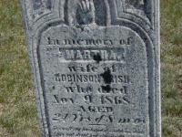 Martha Delia "Polly" Bull was born in March 1844 at Percy Twp., Northumberland Co., Canada West; Date Mar 1844 per Mermorial - age 24y 8m at death Nov 9 1868. Date 1843 & location UC per 1861 Census. Date 1843 & location Cda. per 1851 Census. Date 1844 & location Percy Twp. per Marriage Register.1,2,4,5 She appeared on the census of 1851 at Cramahe Twp., Northumberland Co., Ontario; Age 8 at 1851 Census: see Amos Bull, Jr.1 She appeared on the census of April 1861 at Percy Twp., Northumberland Co., Ontario; Age 17 at 1861 Census: see Amos Bull.2 As of 31 December 1863,her married name was Irish.4 She married William Robinson Irish, son of Noble Festus Irish and Lucia Richardson, on 31 December 1863 at Northumberland Co., Canada West; Marriage Register: Groom: Robinson Irish; Age: - ; Res. & Born: Haldimand Twp; Parents: Testus & Miliha; Bride: Martha Bull; Age:19; Res.: Cramahe Twp; Born: Percy Twp; Parents: Amos & Mary; Date:Dec 31 1863; Place: Northumberland Co. (ancestry.com.)4 Martha Delia "Polly" Bull died on 9 November 1868 at Haldimand Twp., Northumberland Co., Ontario, at age 24; Date Nov 9 1868 per Memorial. William R. Irish is a widower per 1871 Census.6,5 She was buried on 11 November 1868 at Warkworth Cemetery, Warkworth, Northumberland Co., Ontario; Memorial: (See Exhibit) In Memory of; Martha; Wife of; Robinson Irish; Who Died; Nov. 9, 1868; Aged; 24 Yrs & 8 M'o (Warkworth Cemetery, Jun 17 2007.)5