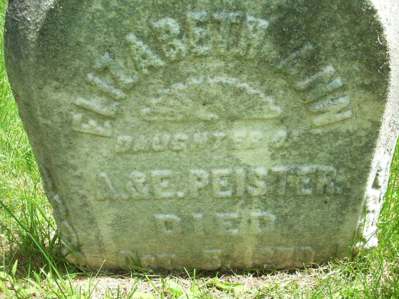 CemSearch: Name: Elizabeth Ann Peister; Born: - ; Died: Oct 5, 1870; Age: 12; ID: 45687; Cemetery: Greenwood Cemetery, Smithfield; No other names.2,3