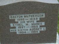 Dalton McPherson was born in 1880; Date 1880 per Burial.1 He married Ethel Maria Mabee, daughter of Newton Wesley Mabee and Sarah Matilda Bush, circa 1930 at Ontario; per Burial.1 Dalton McPherson was buried in 1948 at Frankford Cemetery, Frankford, Hastings Co., Ontario; Memorial: (See Exhibit) Dalton McPherson; 1880 - 1948; His wife; Ethel M. Mabee; 1897 - 1965; Her Sister Audrey I; 1904 - 1985 (Frankford Cemetery, May 22, 2005.)1 He died in 1948 at Ontario; Date 1948 per Burial.1