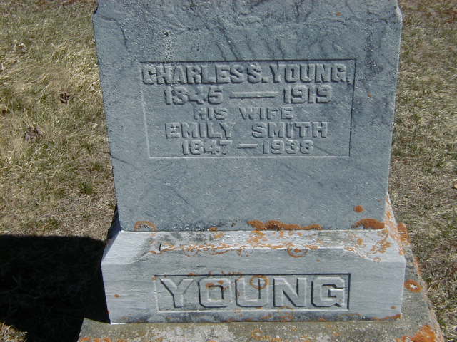 Date 1919 per Burial.4,5 He was buried on 15 August 1919 at Mount Hope Cemetery, Brighton, Northumberland Co., Ontario; Memorial: (See Exhibit) YOUNG; Charles Young; 1845 - 1919; His Wife; Emily Smith; 1847 - 1938 (Mount Hope Cemetery, Brighton, Apr 2 2006.)4,6