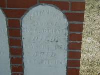 Benjamin C. Garratt was born on 31 May 1853 at Brighton Twp., Northumberland Co., Canada West; Date May 31 1853 per Burial. Date 1853 & location Ont. per 1871 Census.1,2 He appeared on the census of April 1871 at Brighton Twp., Northumberland Co., Ontario; Age 18 at 1871 Census: see William Garratt.1 He died on 11 September 1877 at Brighton Twp., Northumberland Co., Ontario, at age 24; Date Sep 11 1877 per Burial.2 He was buried on 13 September 1877 at Wooler Friends Cemetery, Brighton Twp., Northumberland Co., Ontario; Memorial: (See Exhibit) Benjamin C; Son of; W & E. Garratt; Died; 9 Mo. 11 D's 18??; Aged; 24 Ys 3 Mo 11 D's (Wooler Friends Cemetery, Brighton Twp., Apr 2 2006)
