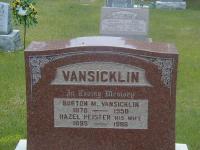 per Burial.1,4 Burton M. Vansicklen died in 1950 at Ontario; Date 1950 per Burial.1 He was buried in 1950 at Stockdale Cemetery, Murray Twp., Northumberland Co., Ontario; Memorial: (See Exhibit) VANSICKLIN; Burton M. Vansicklin; 1878 - 1950; Hazel Peister his Wife; 1895 - 1986 (Stockdale Cemetery, Murray Twp., May 26, 2006.)1