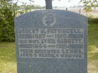 Memorial: (See Exhibit) Robert M. Pettingell; 1837 - 1910; His Wife Lydia Garrett; 1844 - 1915; Their Daughter Lenna; Aged 5 Years 5 Months (Chadsey Cemetery, Athol Twp., May 28 2006.)1