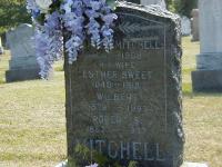CEMSearch: Name: Samuel Mitchell; Born: 1831; Died: 1908-05-04; Notes: Husband of Esther Sweet; Buried: Stone's Cemetery; Other names: Arthur Mitchell (1883-1965), Charles W. Mitchell (1881-1971), Esther Mitchell (Sweet) (1840-1918), Florence Mitchell (Honey) (1891-1965), Jennie Mitchell (Williams) (1909-1986), Robert S. Michell (1867-1937), Wilbert Mitchell (1879-1963)