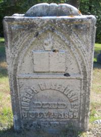 Joseph Rosebush was born on 22 May 1789 at Ballston, Saratoga Co., New York, U.S.A; Date May 22 1789 & location USA per FindaGrave. Date May 22 1789 per GEDCOM of Kathy Nelzen, Aug 20 2006. per Weaver GEDCOM from Kevin C. Weaver, July 31, 2006. Location Ballston, Saratoga, NY per IGI Record.1,2,3,4 He married Clarana Cummings, daughter of Samuel Preston Cummings and Susan Wells, on 15 March 1807 at Rawdon Twp., Hastings Co., Upper Canada; Date Mar 15 1807 per GEDCOM of Kathy Nelzen, Aug 20 2006. Location Rawdon per IGI Record.2,3 Joseph Rosebush lived on 9 July 1852 at Conc 01 Lot 9, Rawdon Twp., Hastings Co., Canada West; Land Registry Records (Patent) show that Joseph Rosebush obtained the Patent from the Crown for all 200 acres of lot 9, conc 1, Rawdon Twp., Hastings Co. ITS Date: Jul 9 1852. (Ontario Land Registry Records, Hastings Co., Rawdon Twp., Book 350, pg. 144 of 250, Conc 01, Lot 09, page from OnLand.ca downloaded by Dan Buchanan, March 27 2023.)5 He died on 29 July 1859 at Rawdon Twp., Stirling, Hastings Co., Canada West, at age 70; Date July 29 1859 per Memorial. Date Jul 29 1859 & location Hastings Co. per FindaGrave. per GEDCOM of Kathy Nelzen, Aug 20 2006.2,4,6 He was buried on 31 July 1859 at Stirling Cemetery, Stirling, Hastings Co., Canada West; Memorial: (see Exhibit) Joseph Rosebush; Died; July 29, 1859; Aged ... (Stirling Cemetery, Stirling, image from Finda Grave, Mar 27 2023)