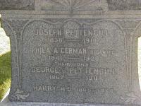 George G. Pettingill was born in 1867 at Hillier Twp., Prince Edward Co., Ontario; Date 1868 & location Ont. per 1881 Census. Date 1867 & location Ont. per 1871 Census.1,3 He appeared on the census of April 1871 at Hillier Twp., Prince Edward Co., Ontario; Age 4 at 1871 Census: see Joseph Pettingill.1 He appeared on the census of April 1881 at Hillier Twp., Prince Edward Co., Ontario; Age 13 at 1881 Census: see Joseph Pettingill.3 He was buried in 1911 at Wellington Cemetery, Wellington, Prince Edward Co., Ontario; Memorial: (See Exhibit) Joseph Pettengill; 1838 - 1910; Phila A. German His Wife; 1841 1929; Their Sons; George G. Pettengill; 1867 - 1911; Harry M.D. 1865 - 1925 (Wellington Cemetery, Wellington May 28 2006.)2 He died in 1911 at Ontario; Date 1911 per Memorial.2