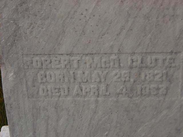 Robert McDowall Clute was born on 29 May 1821 at Fredericksburgh Twp., Lennox & Addington Co., Upper Canada; Date May 29 1821 per Memorial. per GEDCOM of Gene Bard, Dec 14, 2006.1,2 He died on 4 April 1883 at Trenton, Hastings Co., Ontario, at age 61; Date Apr 4 1883 per Memorial.2 He was buried on 6 April 1883 at St. George's Anglican Church Cemetery, Trenton, Hastings Co., Ontario; Memorial: (See Exhibit) Robert McD. Clute; Born: May 29, 1821; Died April 4, 1883 (St. George's Anglican Church Cemetery, Trenton, Sep 1 2018)(Note: These few last memorials are now in the front of the church, moved from the back in recent years.)2
