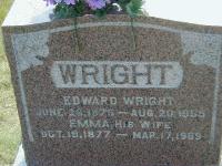 Cemetery Transcription: Name: Edward Wright; Born: Jun 26 1875; Died: Aug 20 1955; Spouse: Emma (McPhail's Cemetery, Cemetery Transcription by Judy & Bill Mills 2001-2002, pg. 7 - Row 3 Stone 12.)9,3